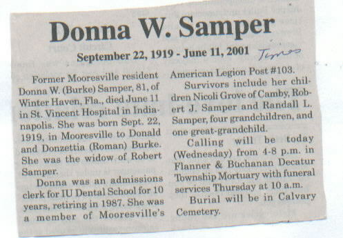 | Other | Preceded in death by spouse; parents, Donald and Donzettia (Roman) Burke. |