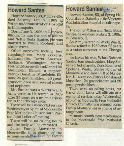 Obituary Source Martinsville Reporter, Oct. 9, 1989