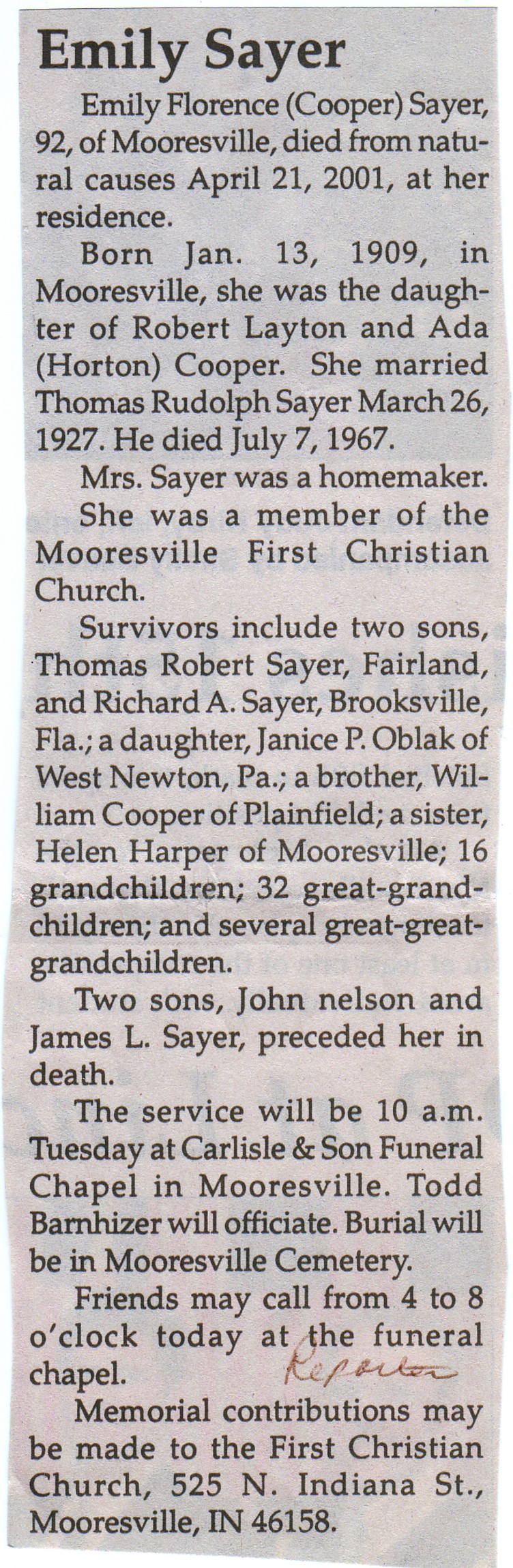 Sayer, Emily Florence