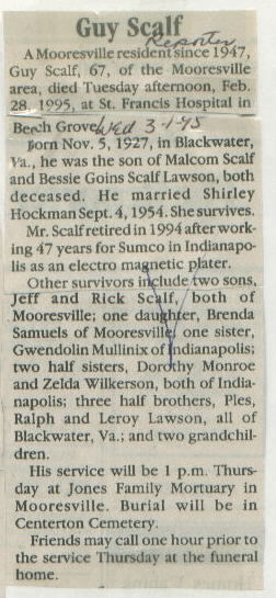 Survived By Widow; 2 sons, Rick and Jeff; daughter, Brenda Samuels; sister, Gwendolin Mullinix; 2 half sisters, Dorothy Monrov and Zelda Wilkinson; Pleas, Ralph, and Leroy Lawson.
