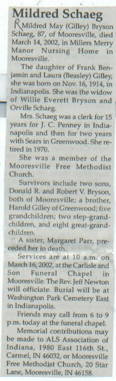 Survived By Two sons, Donald R. and Robert Bryson; brother, Harold Gilley; 5 grandchildren; 2 stepgrandchildren; 8 great-grandchildren.