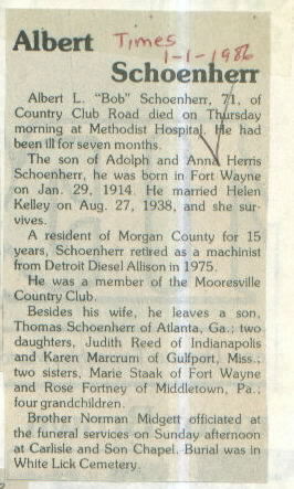 | Obituary Source | Mooresville Times, Jan. 1, 1986 |