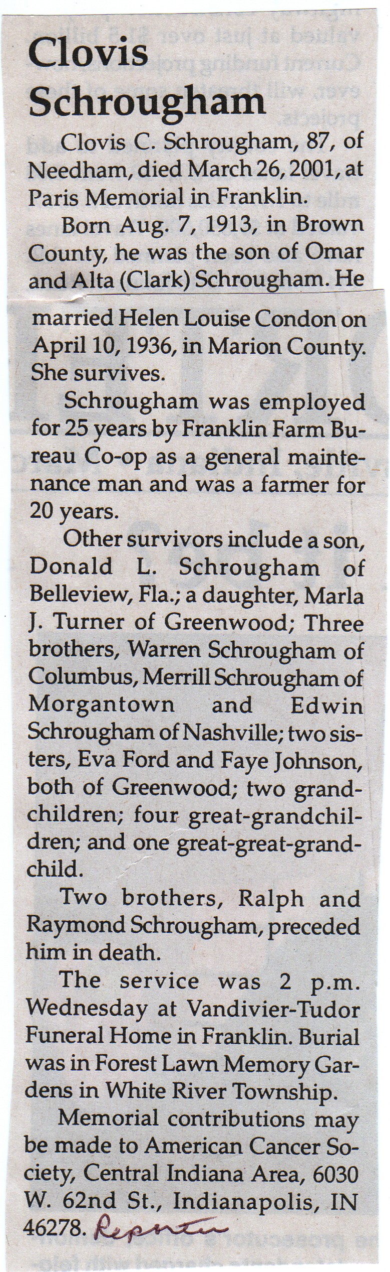 Schrougham, Clovis