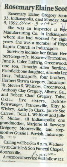 Survived By Father, Herbert Gregory, Jr.; mother, June R. Colee Ludwig; son, Timothy Allen Burdine; daughter, Amanda Lee Gray; 4 brothers, Herbert Shaw, Anthony Clay, Robert Chad Gregory, and Steven S. Whitlow; 5 sisters; grandmother, Marjorie M. Sawyers Gregory; stepmother, Gussie I. Parrish.