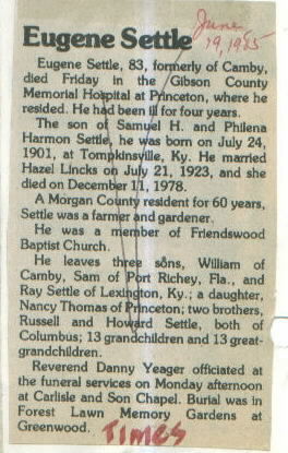 | Obituary Source | Mooresville Times, June 19, 1985 |