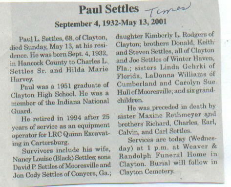 Other Parents: Charles L. Settles, Sr. and Hilda Marie Harvey. Preceded in death by sister, Maxine Rethmeyer, and brothers, Richard, Charles, Earl, Calvin, and Carl Settles.
