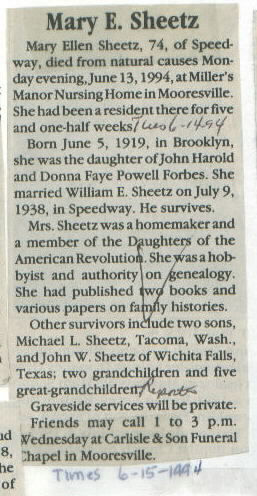 | Obituary Source | Martinsville Reporter, July 14, 1994 |