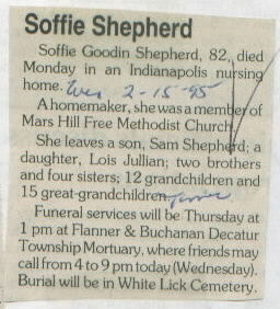 Obituary Source Mooresville Times, Feb. 15, 1995