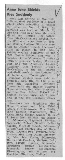 | Obituary Source | Mooresville Times, Nov. 4, 1954 |