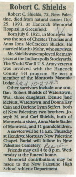 | Obituary Source | Martinsville Reporter, Oct. 27, 1993 |