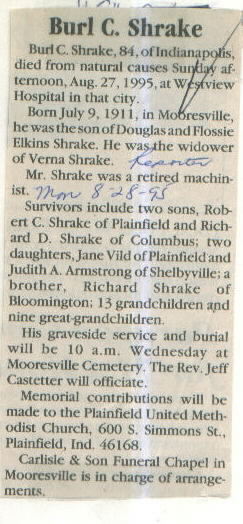 Survived By Sons, Robert C. and Richard D. Shrake; daughters, Jane Vild and Judith A. Armstrong; brother, Richard Shrake.