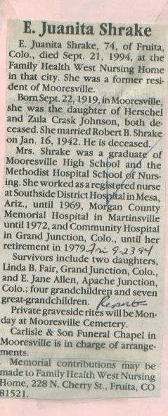| Obituary Source | Martinsville Reporter, Sept. 23, 1994 |