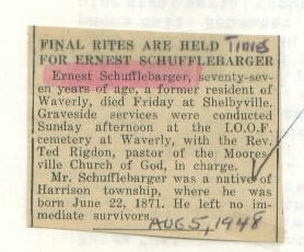 Obituary Source Mooresville Times, Aug. 5, 1948