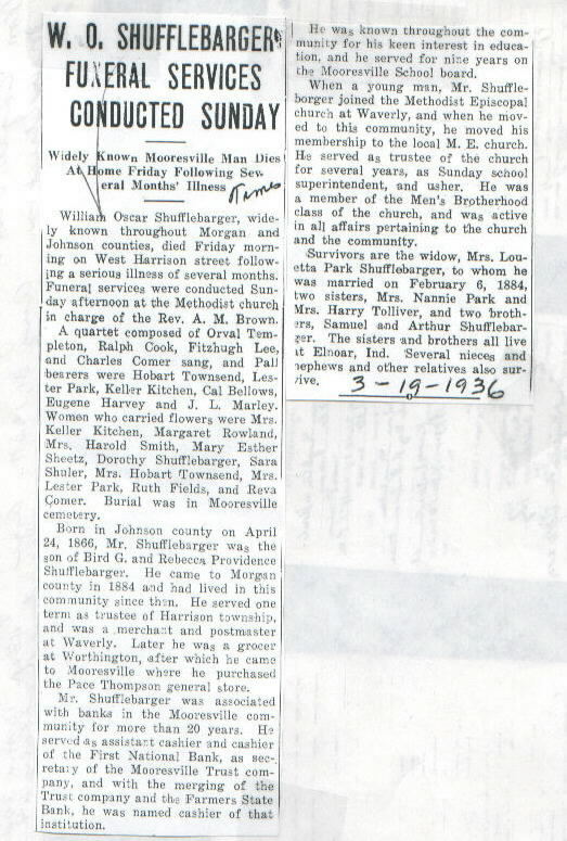 Survived By Wife; sisters, Mrs. Nannie Park and Mrs. Harry Tolliver; brothers, Samuel and Arthur Shufflebarger.