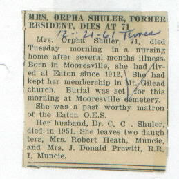 Obituary Source Mooresville Times, Dec. 21, 1961