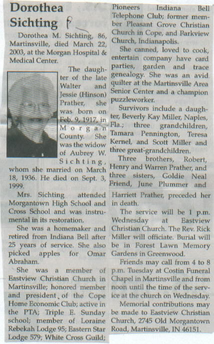 | Spouse | Aubrey W. Sichting (died 1999) |