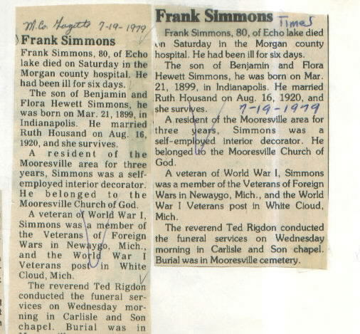 | Other | Age 80. Carlisle Chapel (Rev. Ted Rigdon.) Self-employed interior decorator. Veteran of World War I. |
