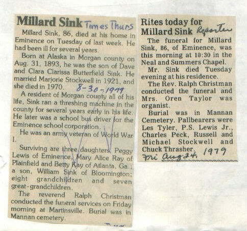 Other Neal & Summers funeral home, Martinsville. Buried Mannan cemetery. School bus driver, Eminence school. Veteran, World War I.