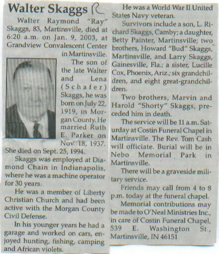 | Other | Age 83. The son of the late Walter and Lena (Schafer) Skaggs, he was born in Morgan County. |