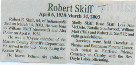 | Survived By | Six children, Shelly Skiff, Rose Skiff, Lois Ann McDole, Natalle Southwood, William Matt (Bill), and Robert E. Skiff II; 8 grandchildren. |