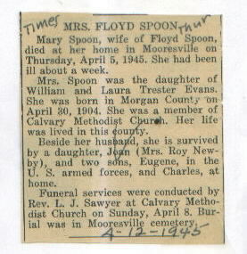 | Obituary Source | Mooresville Times, April 12, 1945 |
