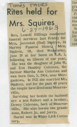 | Obituary Source | Mooresville Times, June 27, 1963 |