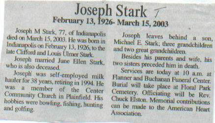 | Other | Age 77. Born in Indianapolis to the late Clifford and Lois Ulmer Stark. |