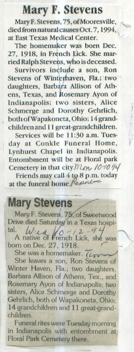 | Obituary Source | Martinsville Reporter, Oct. 10, 1994 |