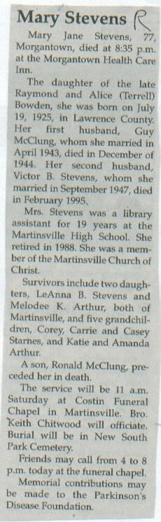 Spouse 1) Guy McClung ;2) Victor B. Stevens