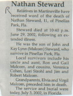 Survived By Parents, John and Kay Lynn (Malcom) Steward; uncle and aunt, Ron and Gail Malcom; cousins, Veronica Cohen, Lori Strohl, and Jim and Robert Malcom.