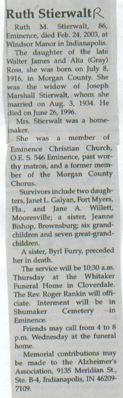 Spouse Joseph Marshall Stierwalt (died 1996)