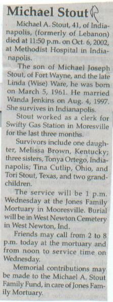 Survived By Widow; daughter, Melissa Brown; 3 sisters, Tonya Ortego, Tina Cutlip, and Tori Stout; 2 grandchildren.