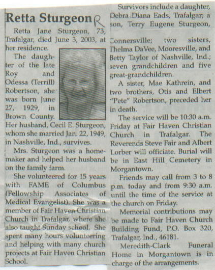 Survived By Spouse; daughter, Debra Diana Eads; son, Terry Eugene Sturgeon; 2 sisters, Thelma DaVee and Betty Taylor; 7 grandchildren; 5 great-grandchildren.
