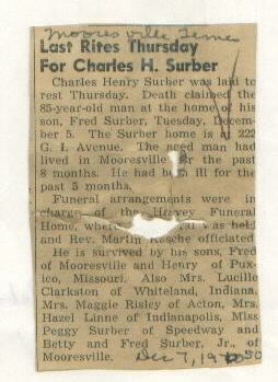 | Survived By | Children, Fred and Henry Surber, Lucille Clarkston, Maggie Risley, Hazel Linne, Peggy Surber, and Betty and Fred Surber, Jr. |