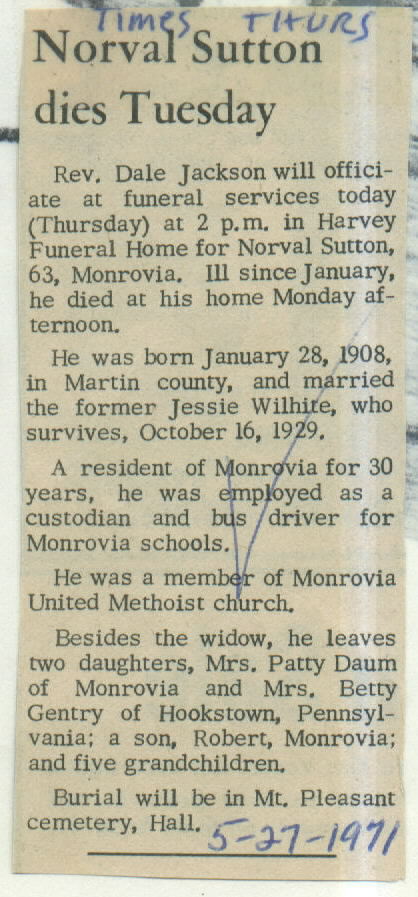 | Obituary Source | Mooresville Times, May 27, 1971 |