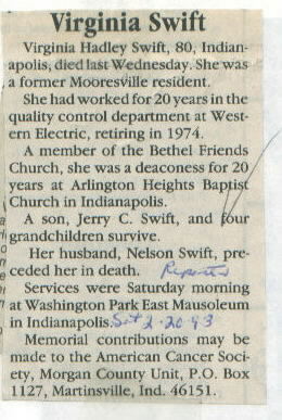 | Survived By | Son, Jerry C. Swift; 4 grandchildren. (A brother, Richard Hadley, is deceased.) |