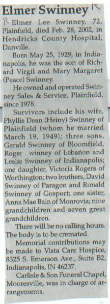 | Survived By | Spouse; 3 sons, Gerald, Roger, and Leslie Swinney; 1 daughter, Victoria Rogers; 2 brothers, David and Ronald Swinney; 1 sister, Anna Mae Bain; 9 grandchildren; 7 great-grandchildren. |
