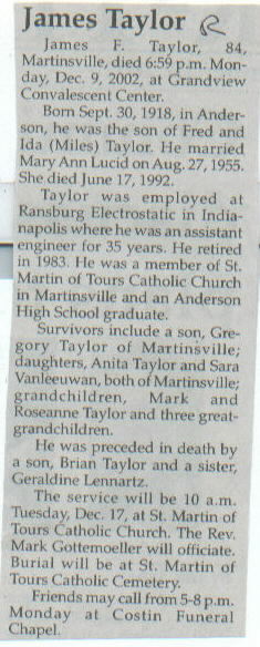 Survived By Son, Gregory Taylor; daughters, Anita Taylor and Sara Vanleeuwan; grandchildren, Mark and Roseanne Taylor.