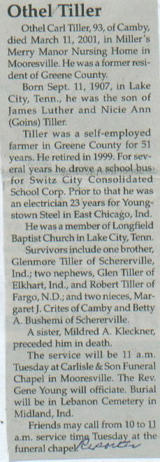 Other Born in Lake City, Tenn., he was the son of James Luther and Nicie Ann (Goins) Tiller.