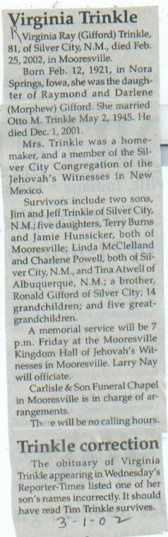 Trinkle, Virginia Ray