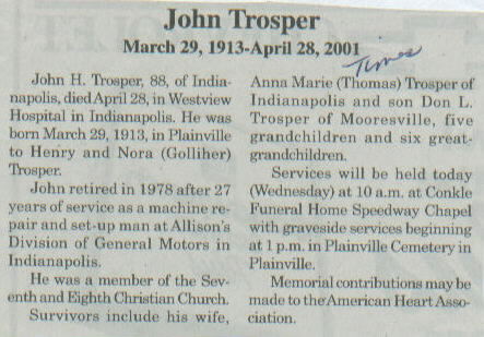| Other | Born in Plainville to Henry and Nora (Golliher) Trosper. |