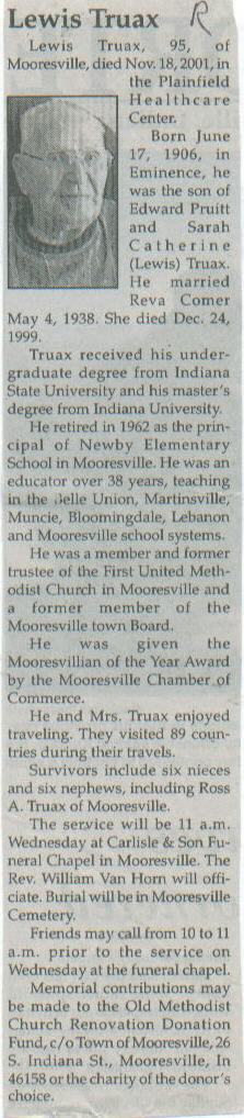 | Survived By | Six nieces and six nephews, including Ross A. Truax of Mooresville. |