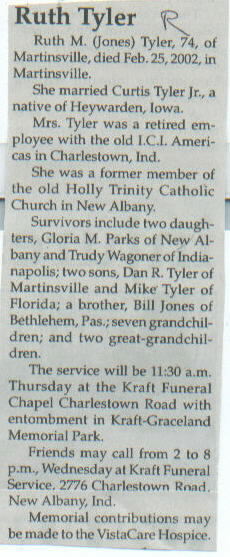 Survived By Two daughters, Floria M. Parks and Trudy Wagoner; 2 sons, Dan R. and Mike Tyler; brother, Bill Jones; 7 grandchildren; 2 great-grandchildren.