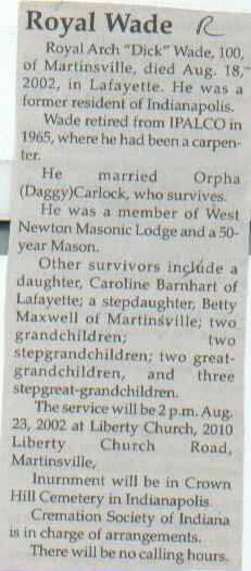 | Survived By | Widow; daughter, Caroline Barnhart; stepdaughter, Betty Maxwell; 2 grandchildren; 2 stepgrandchildren; 2 great-grandchildren; 3 stepgreat-grandchildren. |