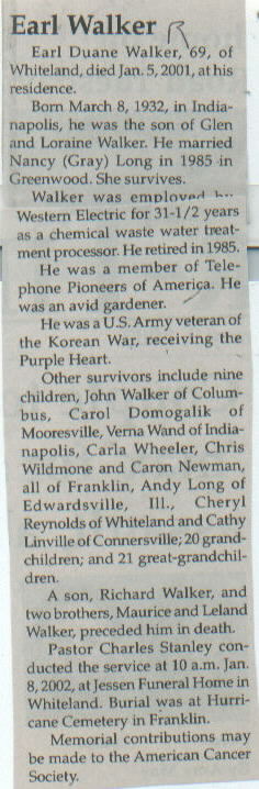 | Other | U.S. Army veteran of the Korean War; received the Purple Heart. A son, Richard Walker, and two brothers, Maurice and Leland Walker, preceded him in death. |