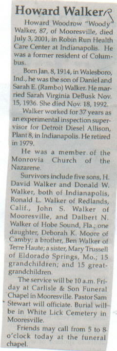 | Survived By | Five sons, H. David, Donald W., Ronald L., John S., and Dalbert N. Walker; daughter, Deborah K. Moore; brother, Ben Walker; sister, Mary Trussell; 15 grandchildren; 15 great-grandchildren. |