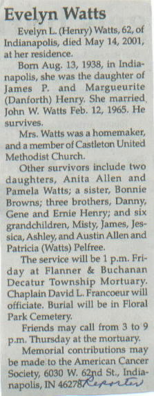 Survived By Spouse; 2 daughters, Anita Allen and Pamela Watts; sister, Bonnie Browns; 3 brothers, Danny, Gene, and Ernie Henry; 6 grandchildren, Misty, James, Jessica, Ashley, and Austin Allen, and Patricia (Watts) Pelfree.