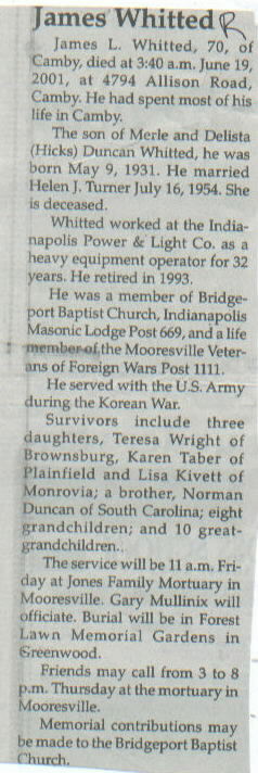 Other Parents: Merle and Delista (Hicks) Duncan Whitted. U.S. Army veteran, Korean War.