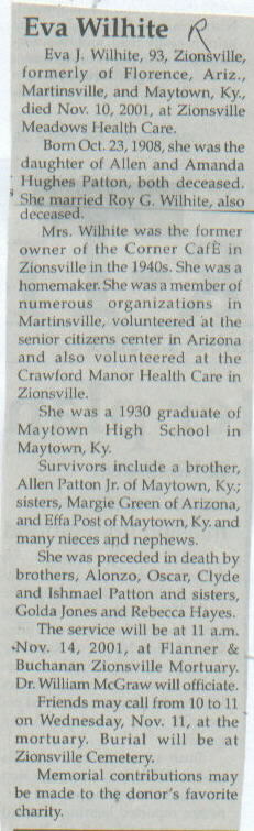 | Survived By | Brother, Allen Patton, Jr.; sisters, Margie Green and Effa Post; many nieces and nephews. |