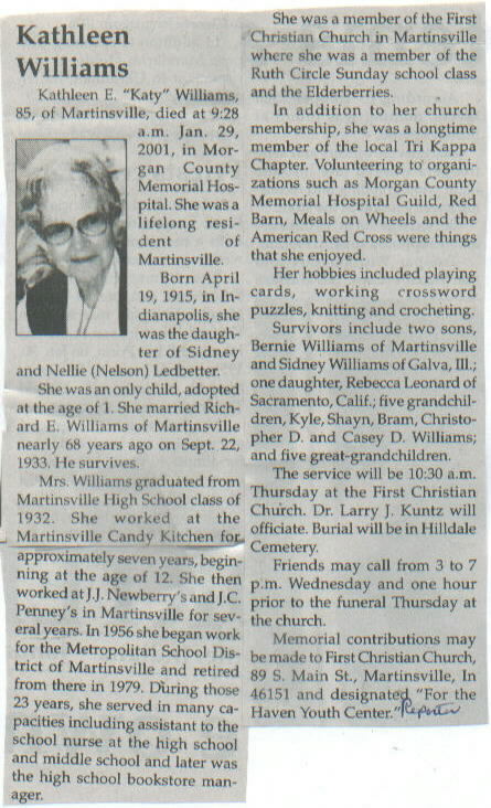 | Other | Born in Indianapolis, she was the daughter of Sidney and Nellie (Nelson) Ledbetter. |